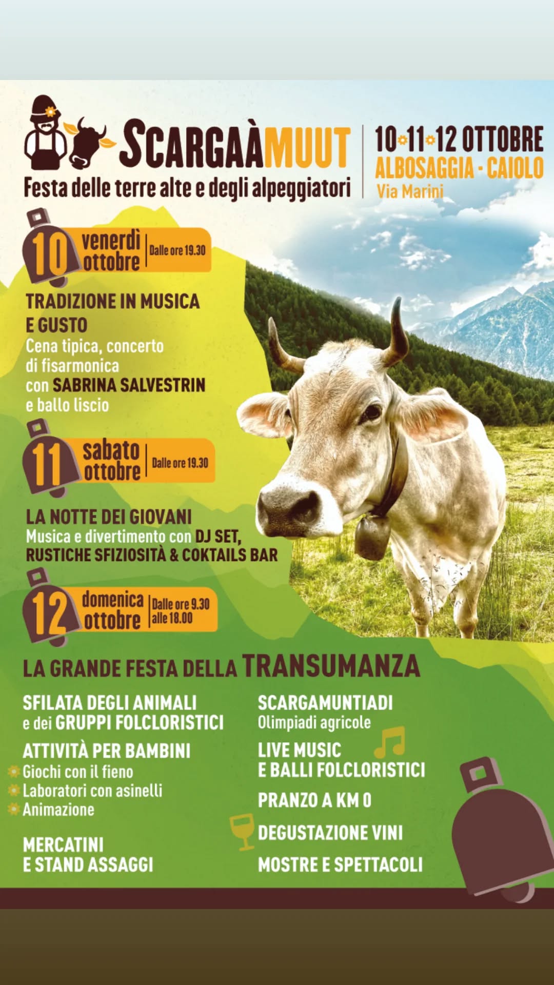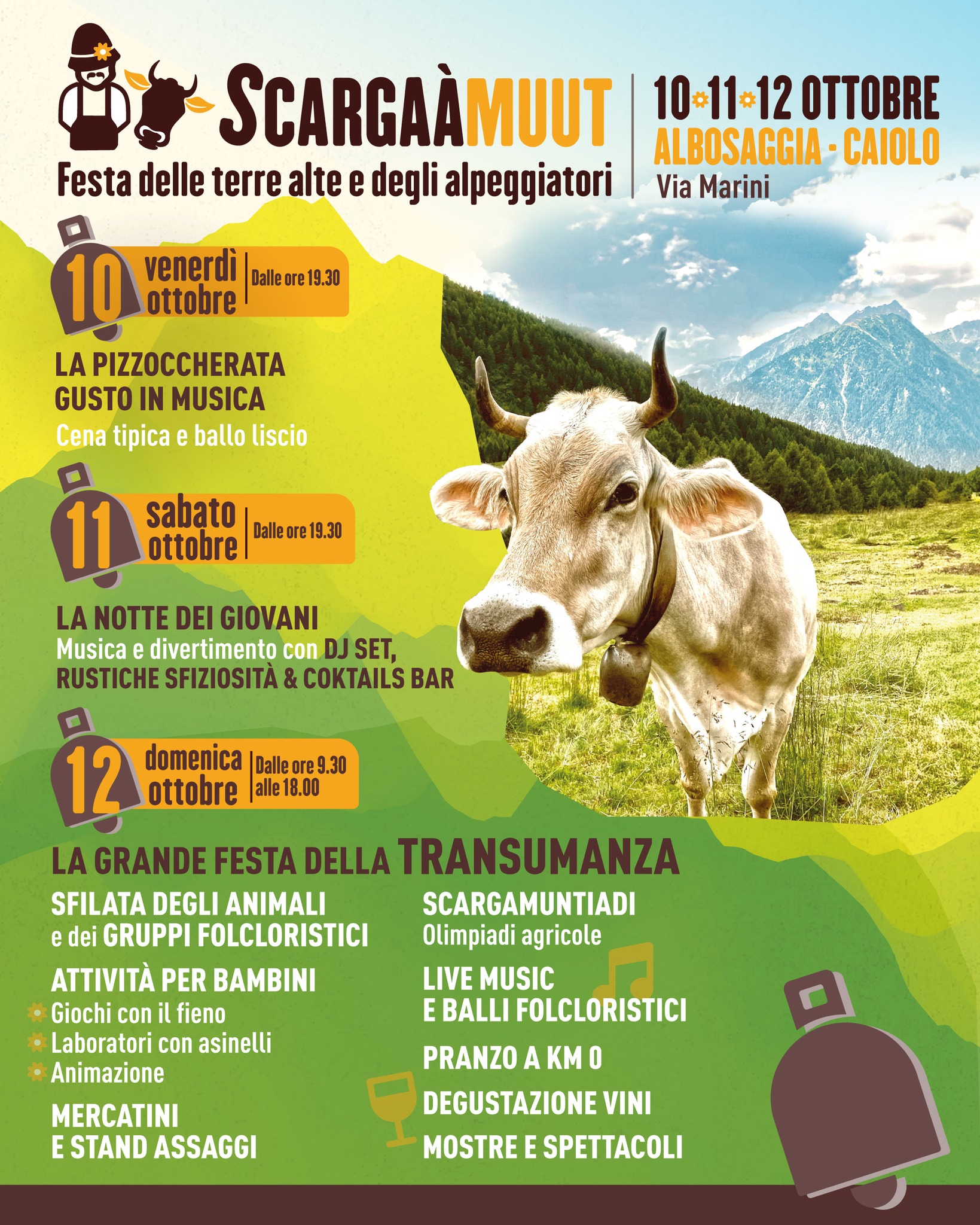 Scargaàmuut, la grande festa di inizio autunno che celebra il rientro degli allevatori e del bestiame ai prati del fondovalle, dopo aver trascorso l'estate fra gli alpeggi di Albosaggia e Caiolo.
