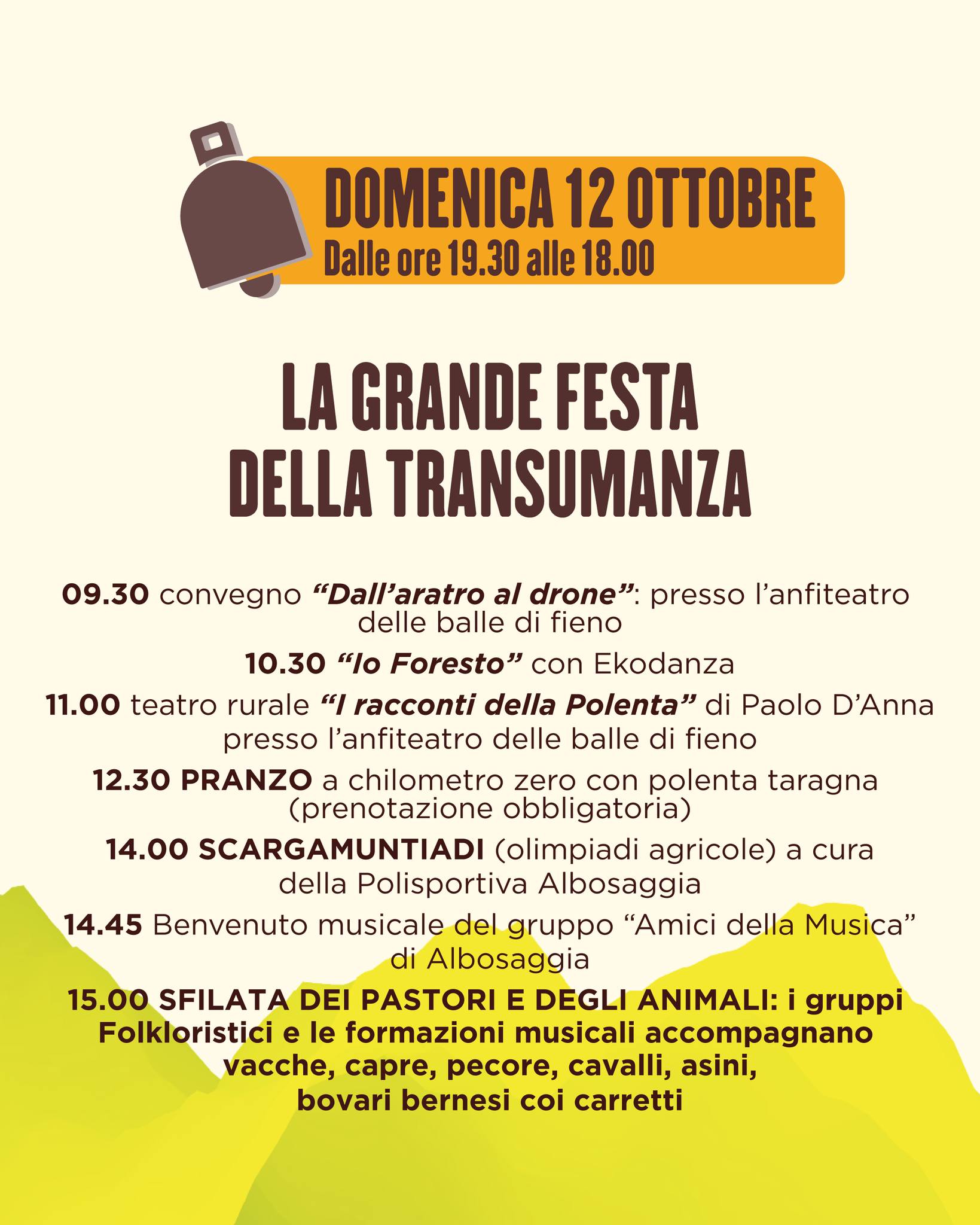 Si celebra la giornata con eventi e laboratori a tema, con sfilate di animali e costumi tipici locali e pregiato cibo a chilometri zero. Al centro: la bellezza dell’incontro tra uomo e natura, fra tradizione e innovazione e l’orgogli di essere figli della montagna.