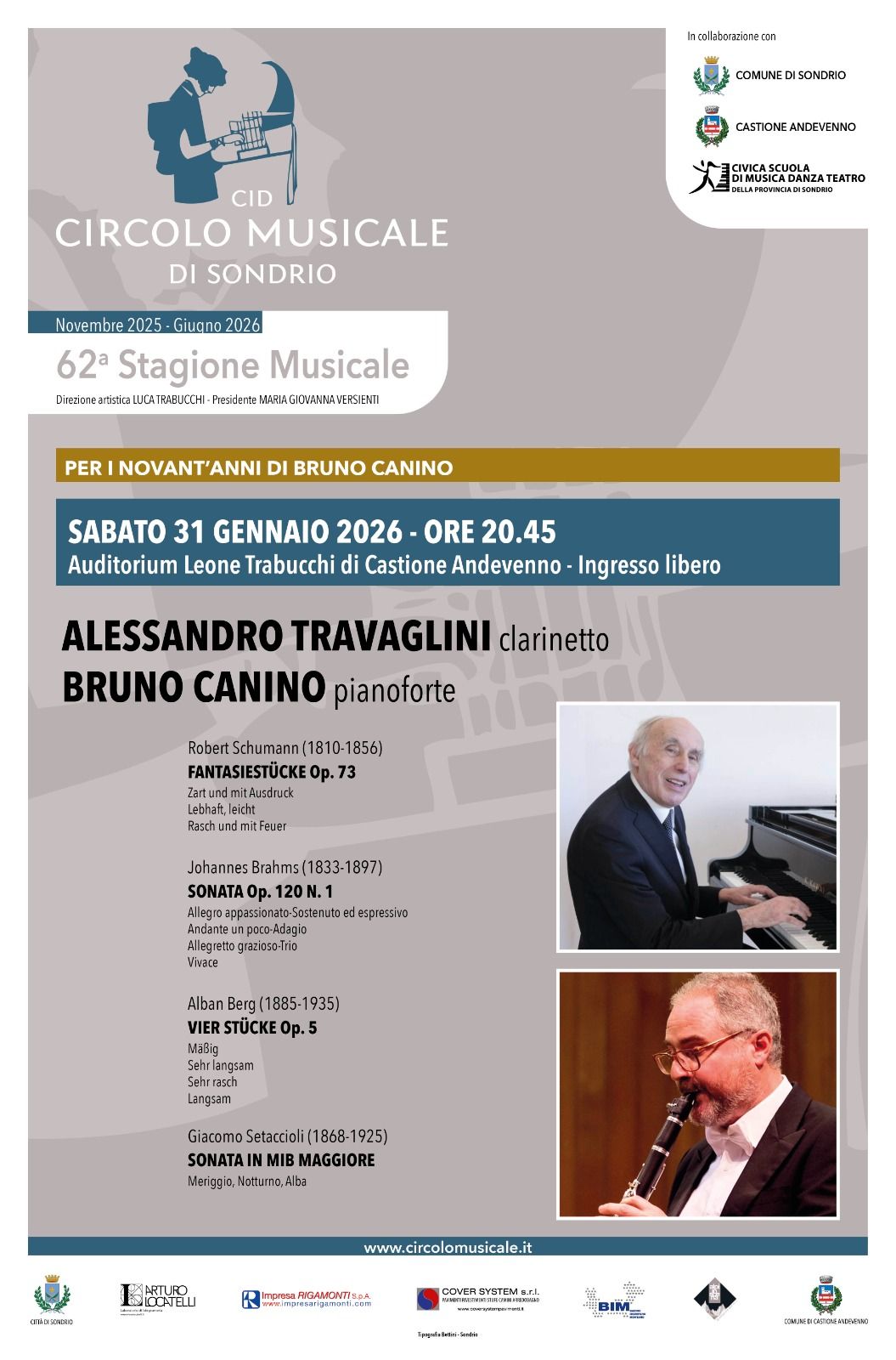 con Alessandro Travaglini clarinetto e Bruno Canino pianoforte