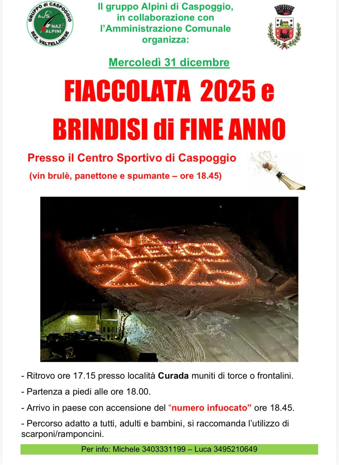 31 dicembre 2025 a Caspoggio con accensione del numero infuocato!