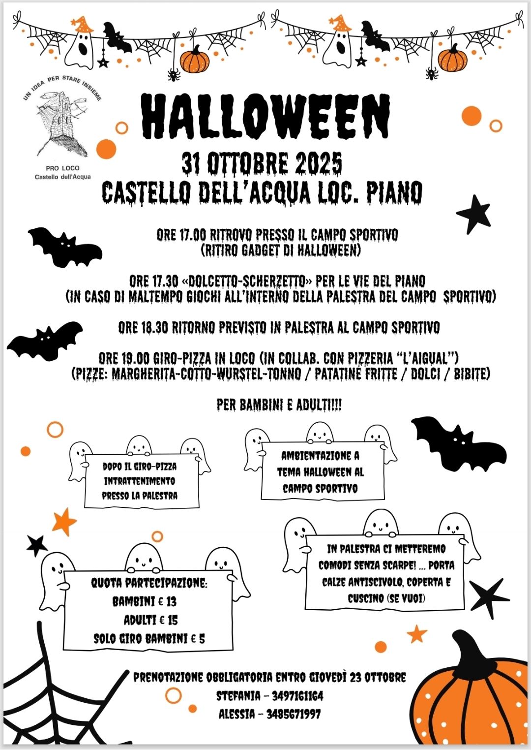 Prenotazioni entro il 23/10 a Stefania 3497161164 e Alessia 3485671997