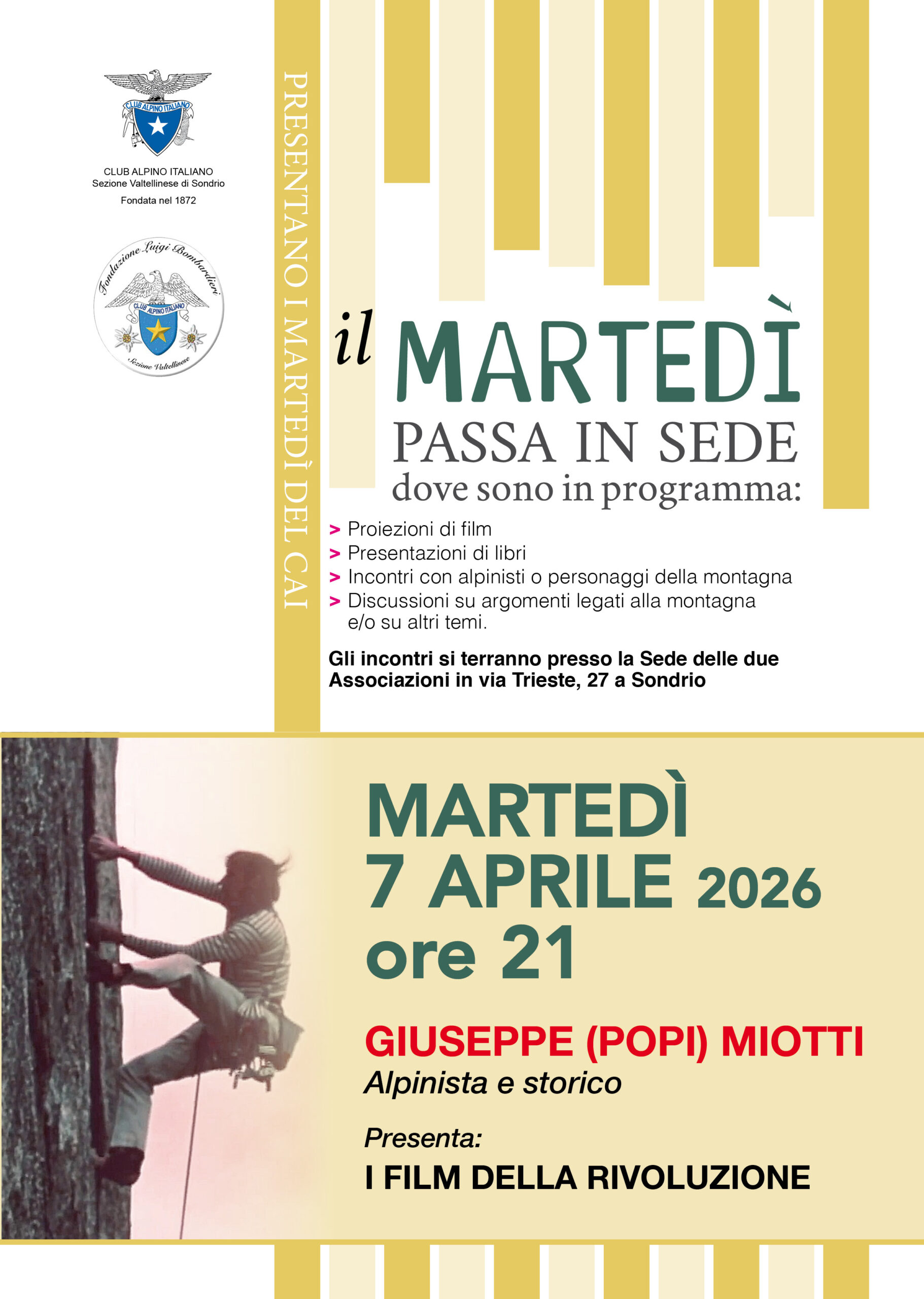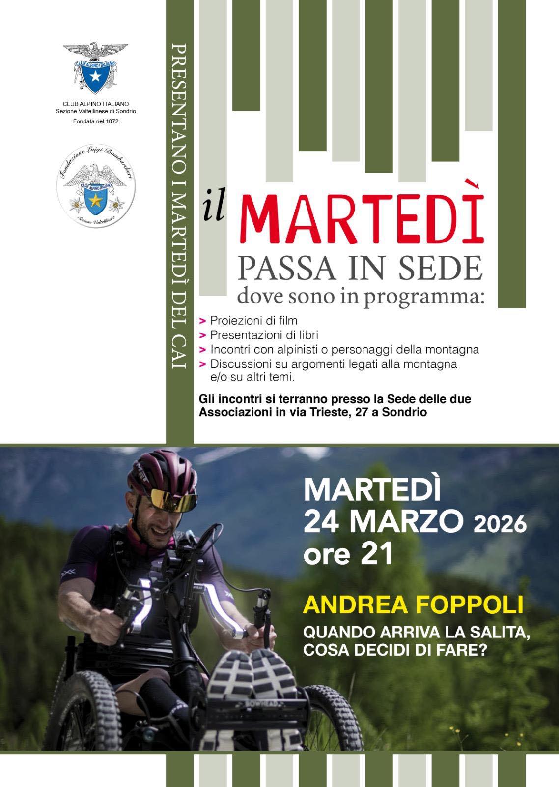 ore 21.00 presso la sede di via Trieste 27 a Sondrio