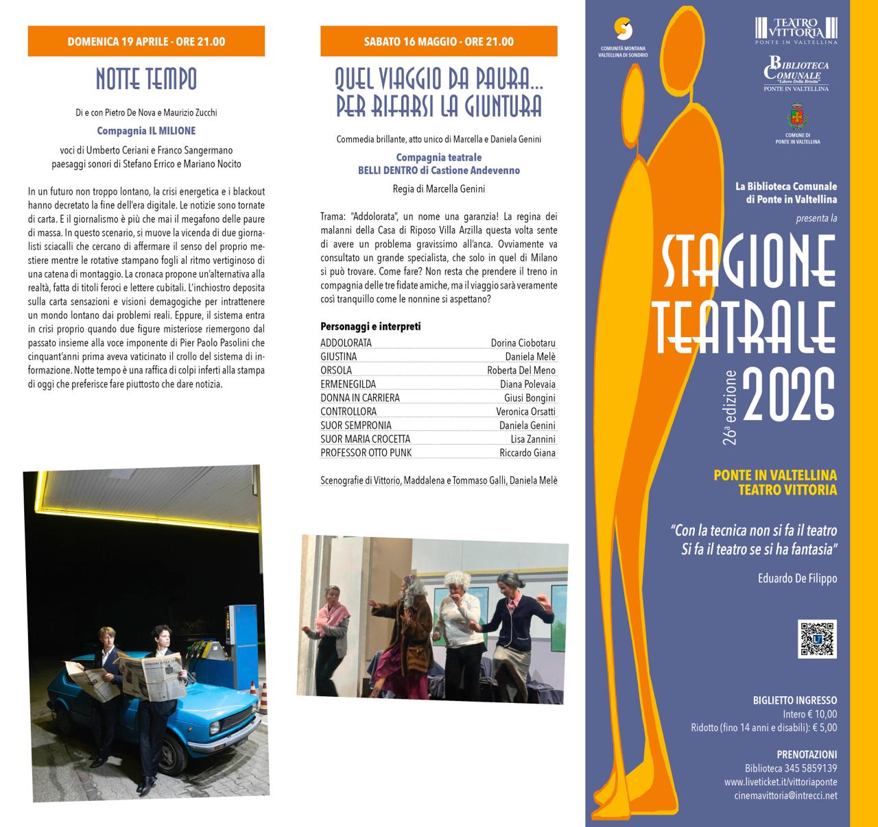 Il Cinema Teatro Vittoria di Ponte in Valtellina è pronto ad accogliere il pubblico per la nuova stagione teatrale 2026.