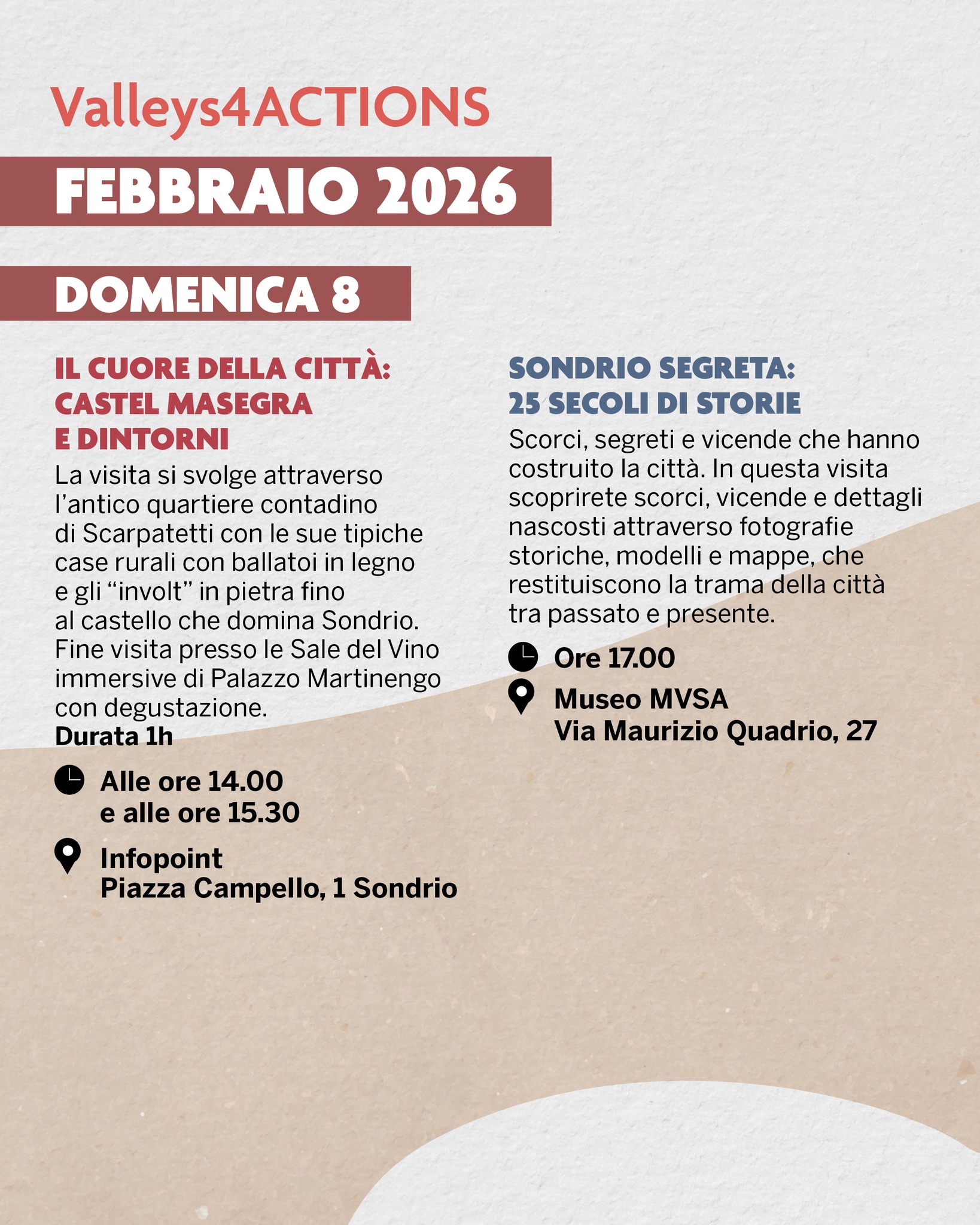 Valley4ACTIONS organizza visite nelle zone più significative della città di Sondrio.