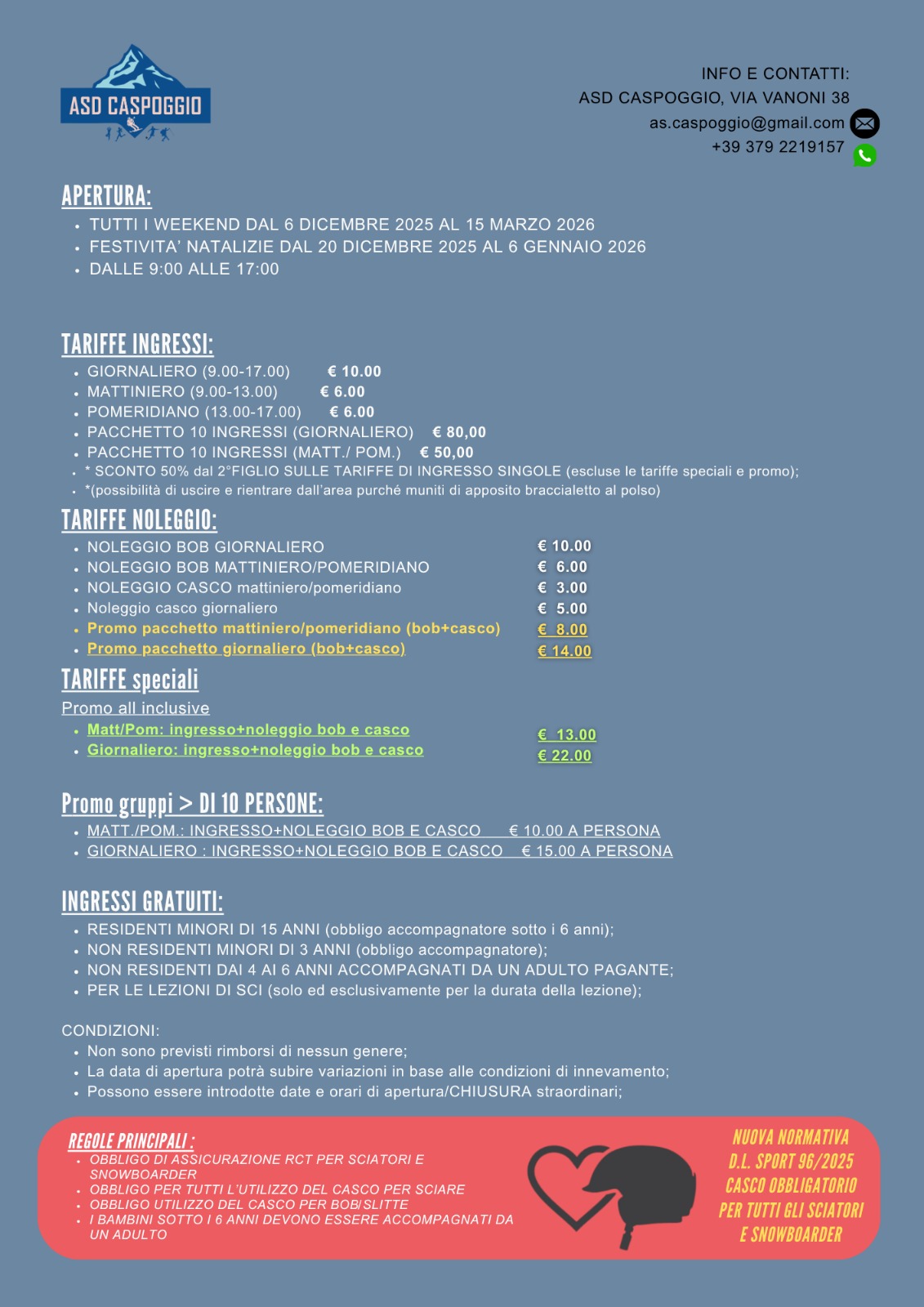 Contatti: ASD Caspoggio - 3792219157 - as.caspoggio@gmail.com